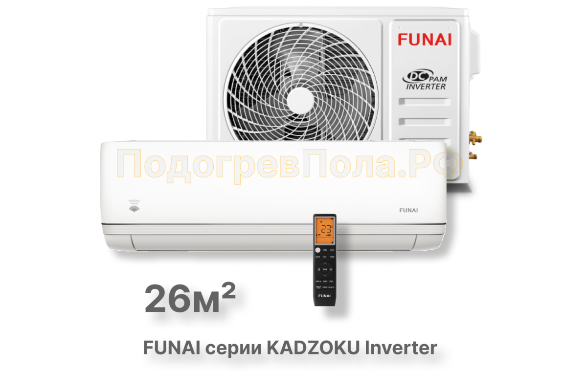 Купить FUNAI Инверторные сплит системы серии KADZOKU Inverter RAC-I-KD25HP.D01 по выгодной цене вы можете в нашем магазине "ПодогревПола.Рф" в г. Сочи.